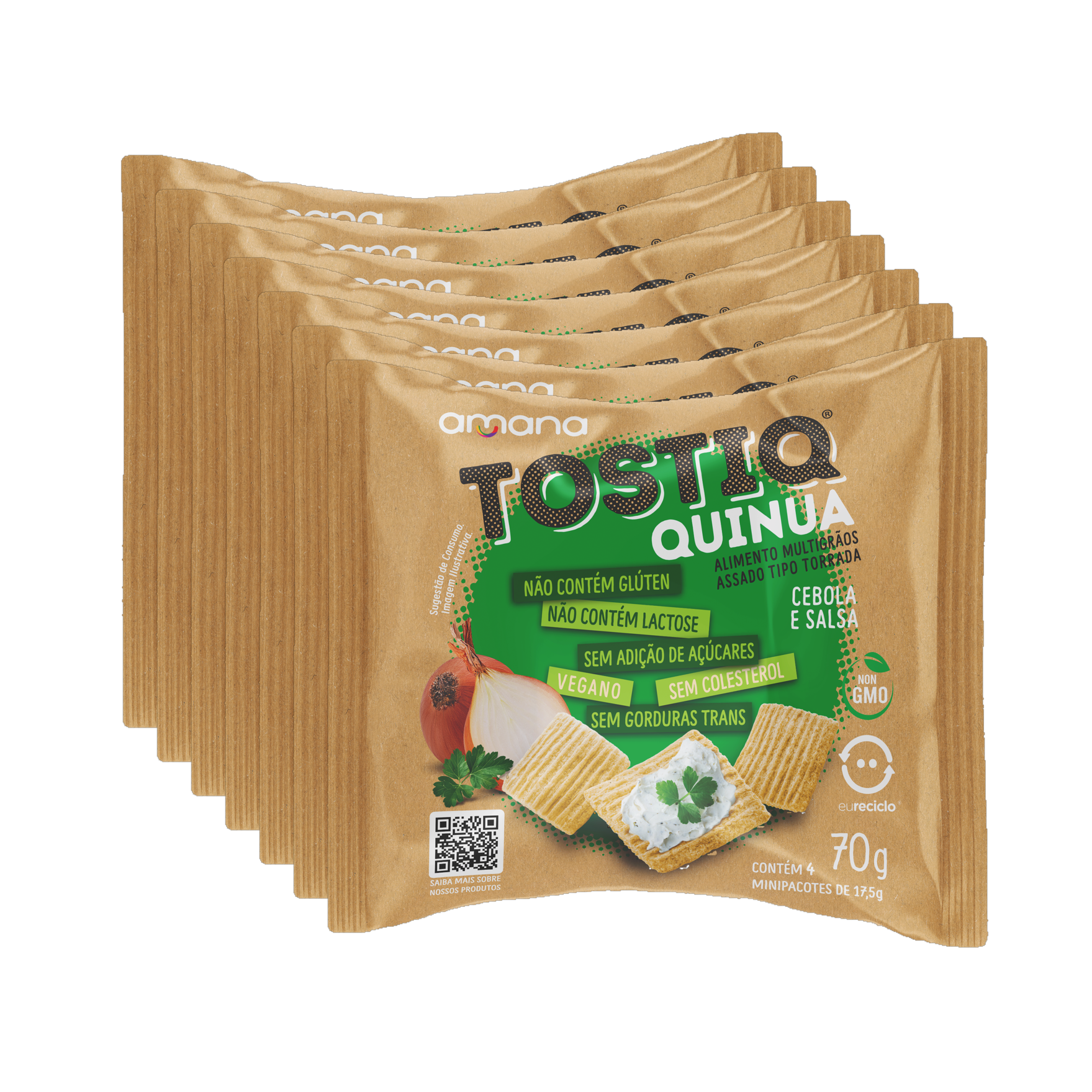 Ingredientes: Farinha integral de quinua, farinha integral de aveia, farinha de arroz, farinha de milho enriquecida com ferro e ácido fólico, sal, cebola, alho, salsa, edulcorante maltitol, acidulante ácido cítrico e aromas naturais (cebola, alho e salsa). ALÉRGICOS: CONTÉM AVEIA. NÃO CONTÉM GLÚTEN.